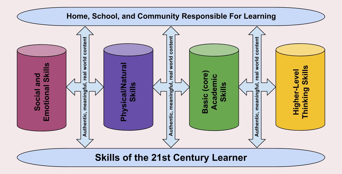 Four skills important for the 21st Century learner that relate to my practice are social and emotional skills, and physical/natural skills, basic (core) academic skills, and higher-level thinking skills.  When these skills are supported and practiced by the school, home, and the community, and combined with authentic, meaningful and real-world practice we are preparing our learners to make positive contributions to society.