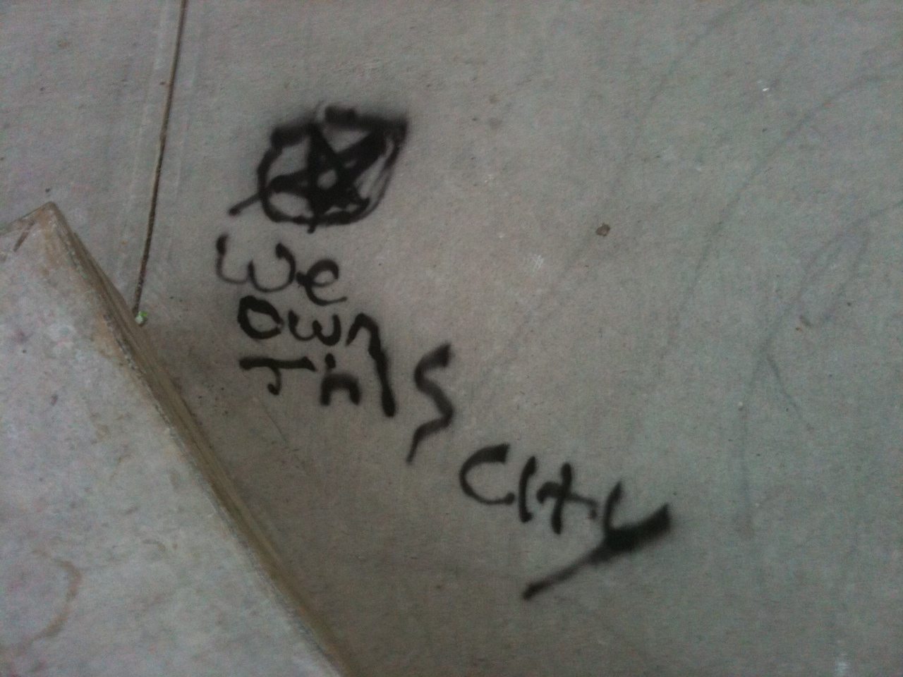 You can imagine how I felt when, on Tuesday morning, I arrived at work at 7am to find three separate messages spray-painted on the concrete at the south entrance to the school.  I was outraged!  The messages read, “@#$% the world 666”, “We rule this town,” and “Ho’s legs are as wide as the hallways.”  I could not stand the thought of students seeing the messages when they arrived at school, so I covered them up with garbage bags and masking tape.  Shortly after school started, I used the experience as a circle discussion in class, which led to a writing assignment.  A selection of student writing can be found below.  I assumed that someone would be on their way to school soon to remove the paint.  I was wrong.  72 hours later, two of the three messages remained.  Not only that, but since Tuesday afternoon when the first message was cleaned, the other messages were uncovered and left visible for all to see.  Could we have done better?