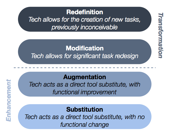 For the purpose of this assignment, I will discuss two fictitious teachers who work in the same elementary school and their effective use of reference resources in their pedagogical practices. Using the Concerns-based Adoption Model (Figure 1) to evaluate the success of new programs and techniques, as well as SAMR model ( Figure 2) of technology integration, I will compare the two teachers in their approach to change.